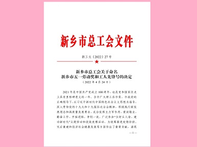 华体会(中国)李世伟同志被授予新乡市五一劳动奖章