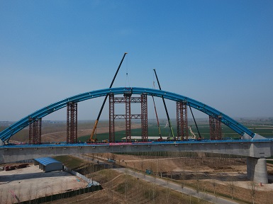 华体会(中国)雄商高铁(梁山段)黄河特大桥钢拱肋顺利合龙