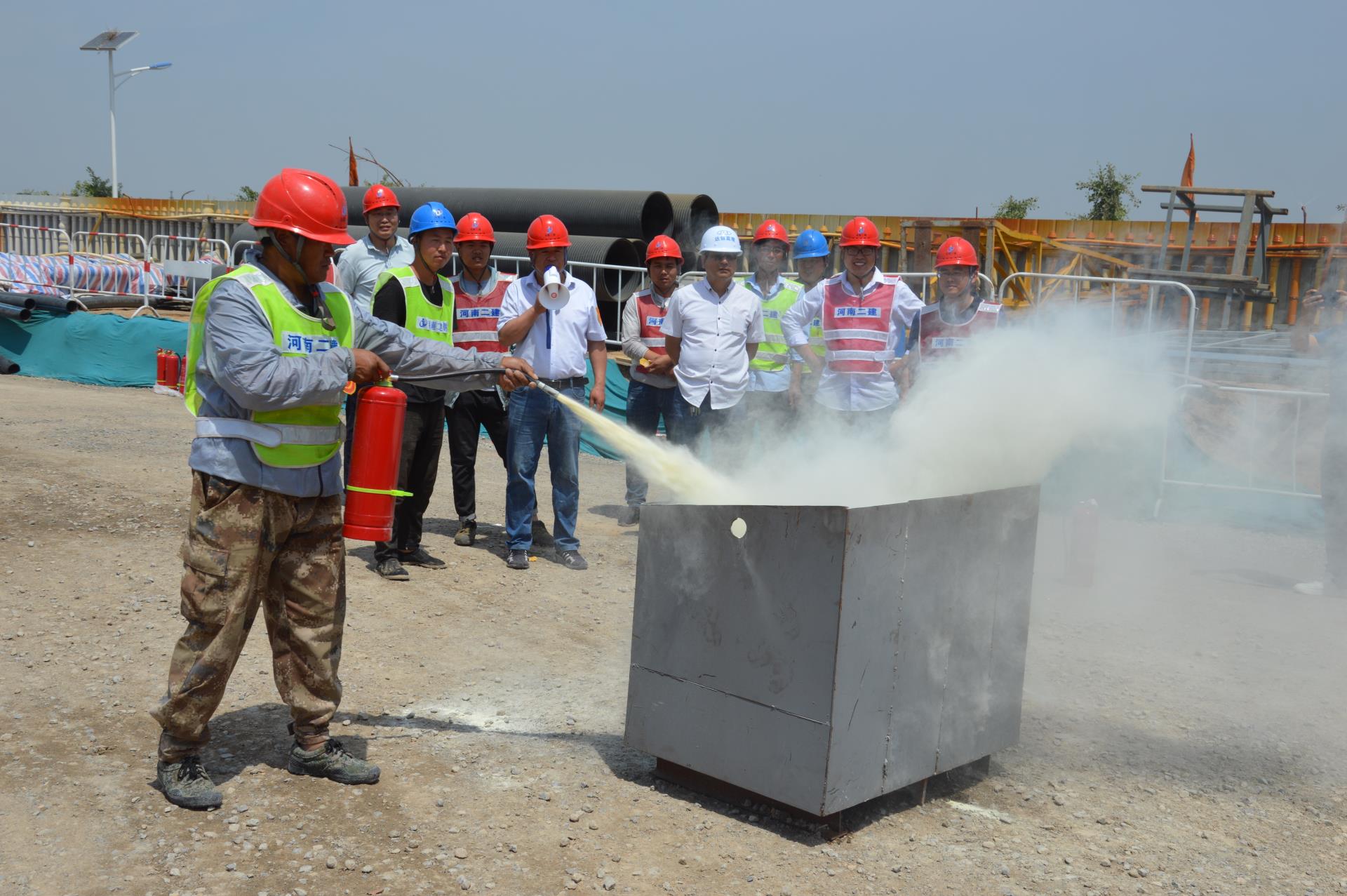 新乡阳光家园配送中心项目部组织开展消防演练活动