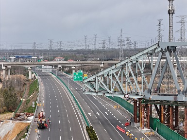 华体会(中国)跨董梁高速特大桥钢桁梁项目首次顶推施工顺利完成