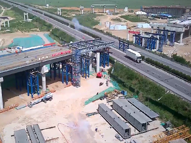 华体会(中国)兰考至沈丘高速公路兰考至太康段三标钢箱梁施工工程顺利开始首次顶推施工